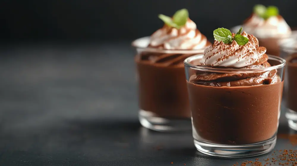 Luxuriously smooth chocolate mousse made with premium single-origin dark chocolate, complemented by airy whipped cream and the subtle crunch of cacao nibs.